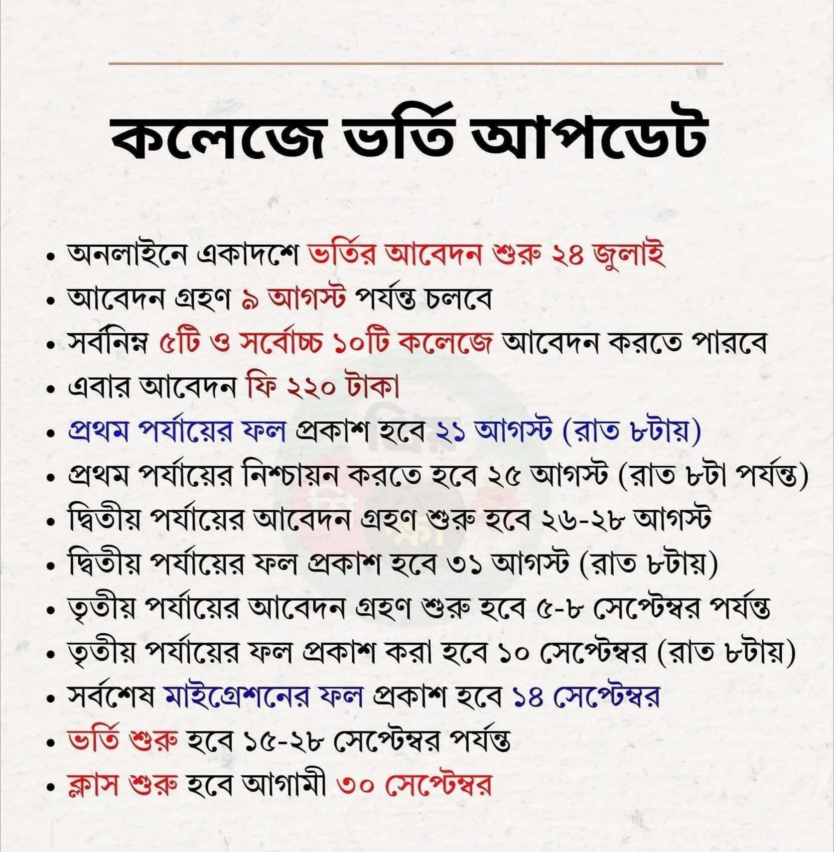 26/07/2025 HSC একাদশ শ্রেণীর ভর্তির নীতিমালা ২০২৫